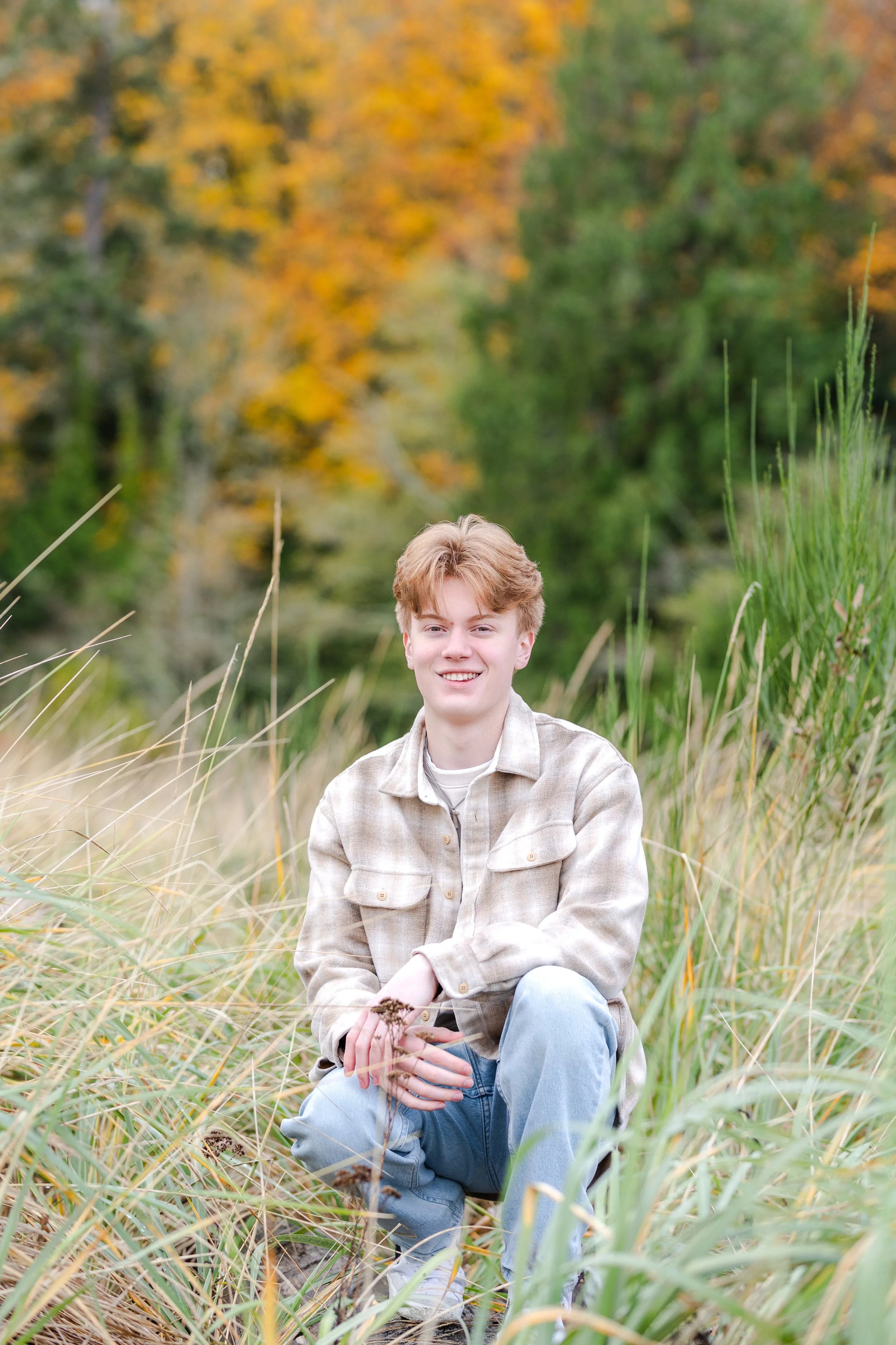Anderson Point Park is an excellent location to choose for your senior portraits as it boasts forest, beach, and tall grass all in one location. In the fall, as seen in Justin’s gallery, the orange trees are vibrant and add to the cozy, autumn feel that many Kitsap seniors prefer for their senior portraits.