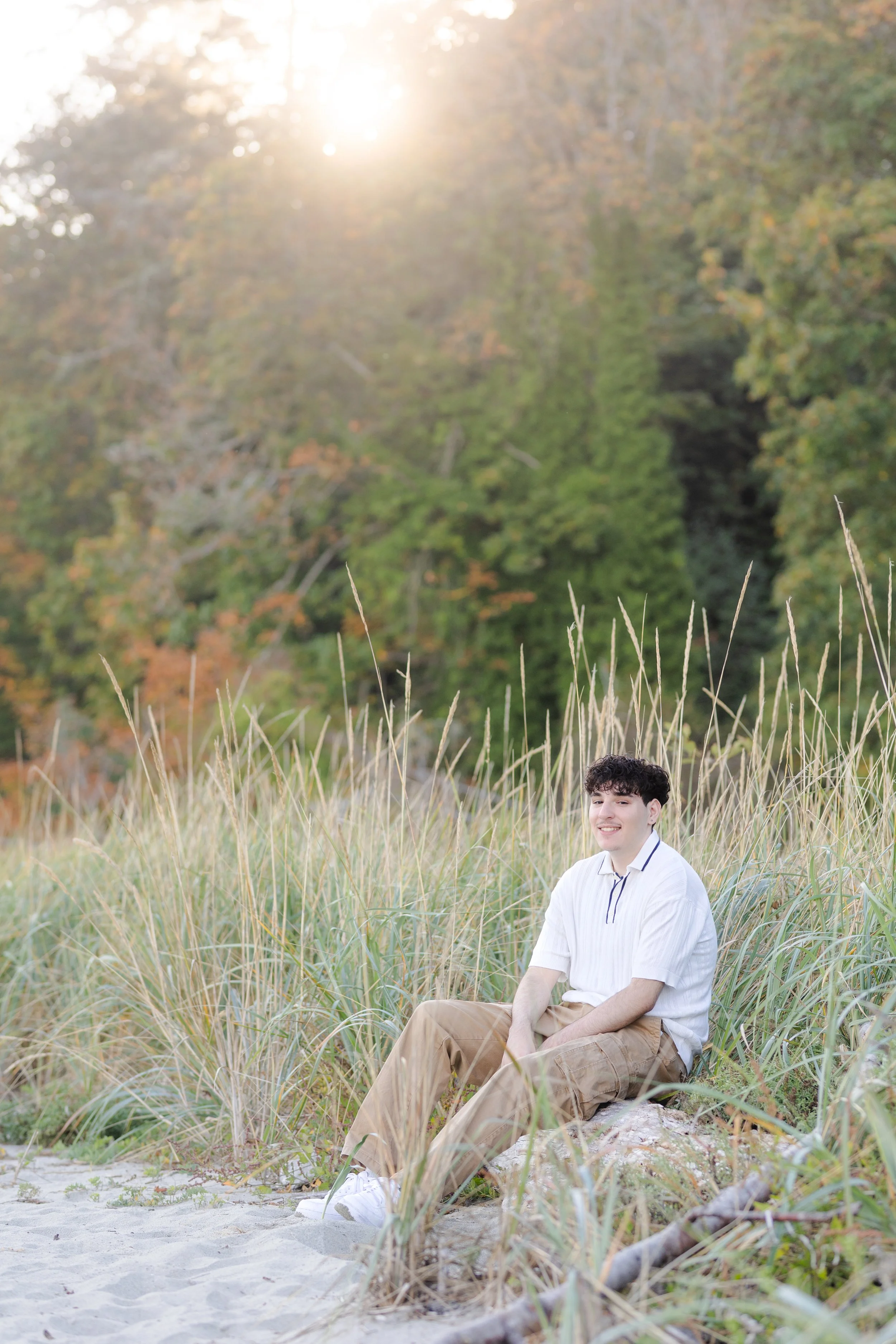 Riley’s senior portrait session at Anderson Point Park in Olalla was the perfect mix of fall and summer. He chose two different tops that complimented him and the backdrop nicely.