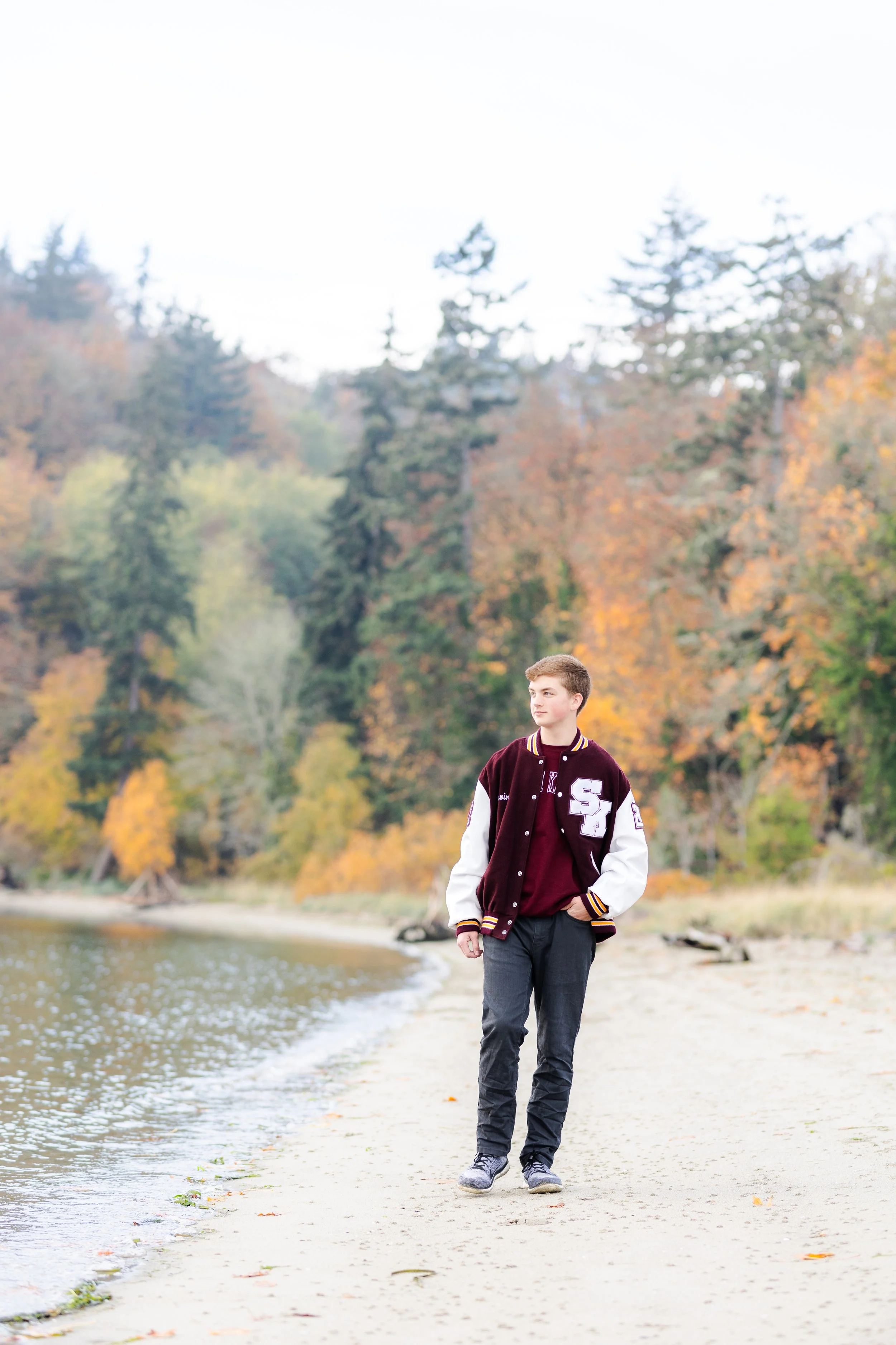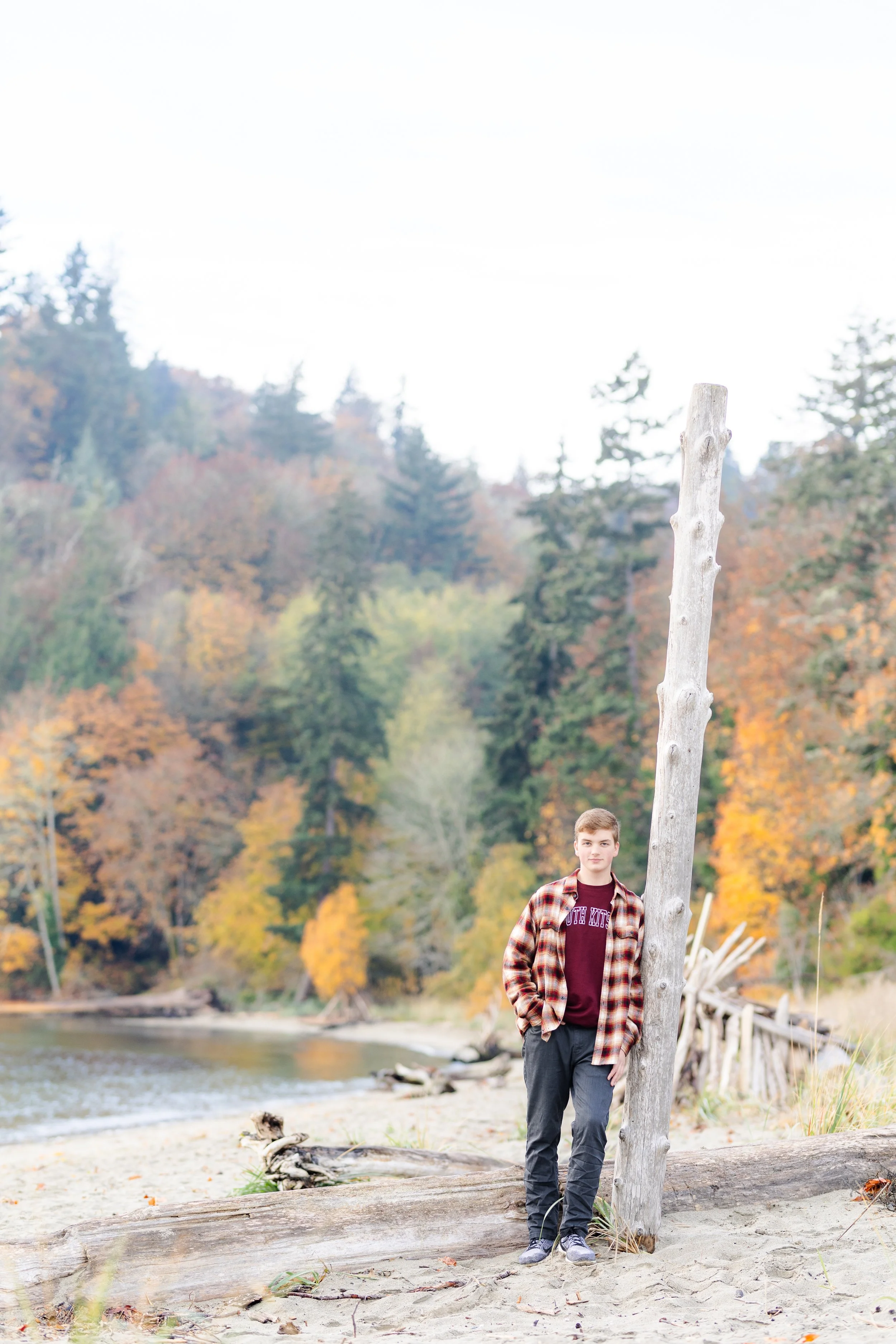 Anderson Point Park is the perfect location for Kitsap seniors looking for fall colors and the beach in their senior pictures. The evergreen trees within the deciduous trees add to the overall Washington feel that many seniors are looking for for their senior photos.
